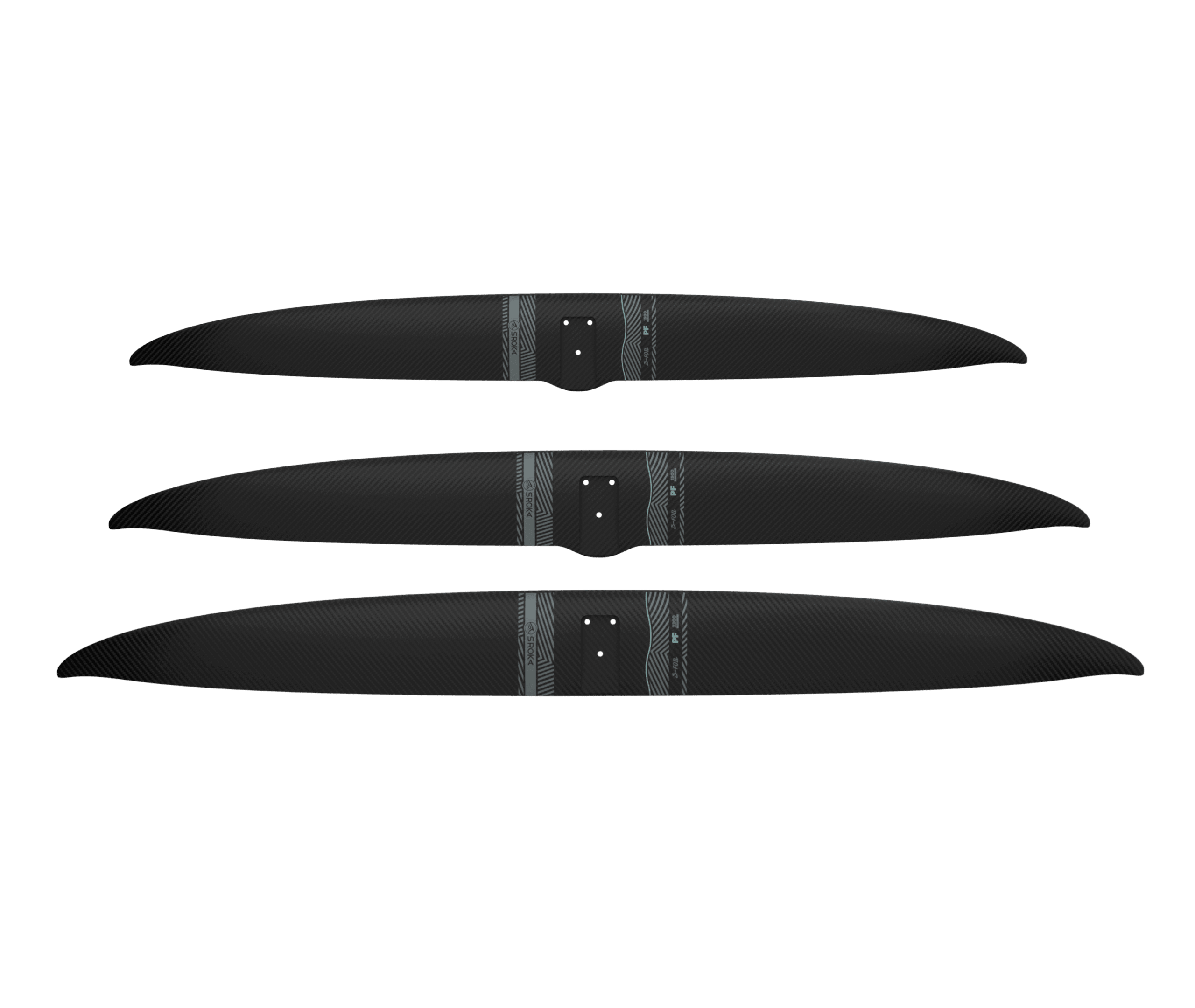 L’aile de foil avant Pump foil 1750 cm2: C’est l’aile avant est un vrai 4X4 pour beaucoup de pratiquant. la réduction d’envergure à 150 cm avec un aspect ratio toujours de 13,2 en fait une aile qui va tourner correctement tout en ayant un très bon fond de puissance. Si vous êtes à la recherche d’une seule aile avant pour faire du pumping, c’est un très bon choix.