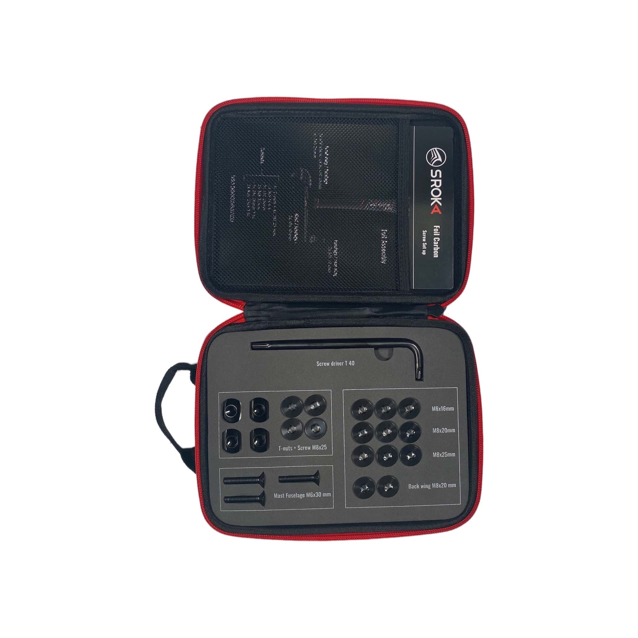 La visserie foil titane SROKA Tool Box est conçue spécifiquement pour l’ensemble de la gamme S-Foil SROKA — aluminium et carbone, toutes générations. Les vis M8 couvrent les fixations mât/fuselage et ailes avant. Les vis M6×30 sont dédiées aux connexions spécifiques. En cas de doute sur la compatibilité avec votre modèle exact, contactez-nous au +33 2 98 32 53 69.